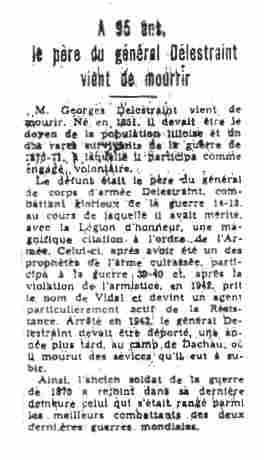 Article annonçant le décès de M. Georges DELESTRAINT, père du Général