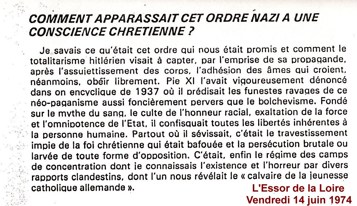 Que cela soit clair : il n'est nullement dans ces pages question de mettre en exergue des fragments de textes faisant appel à des thèmes exclusivement catholiques, ni d'exprimer ici une quelconque préférence dans le parallélisme délibéré d'un vocabulaire et l'expression d'idées qui se veulent ressemblant(e)s, avec pour but de mieux contrer le discours communiste et de l'utiliser à des fins plus religieuses.