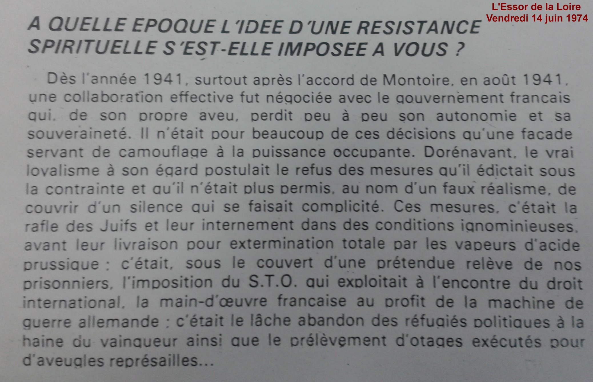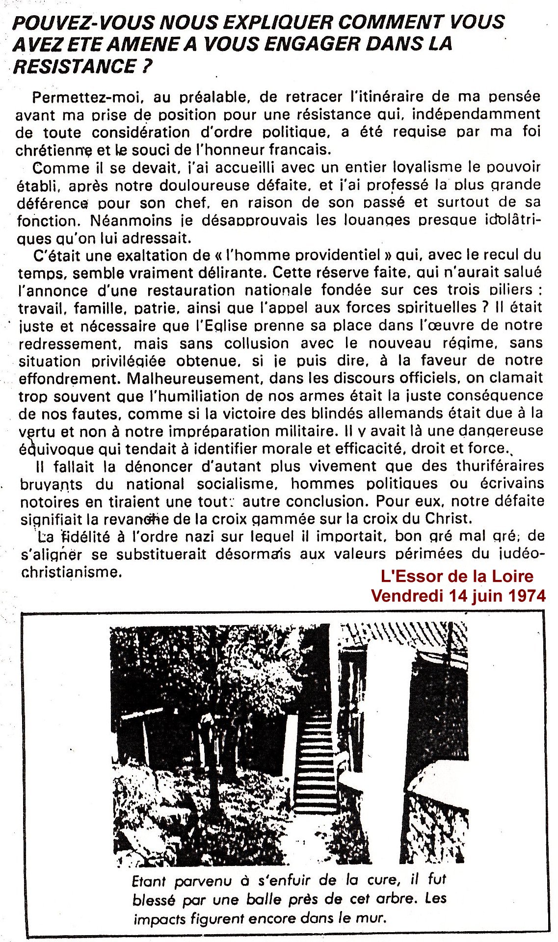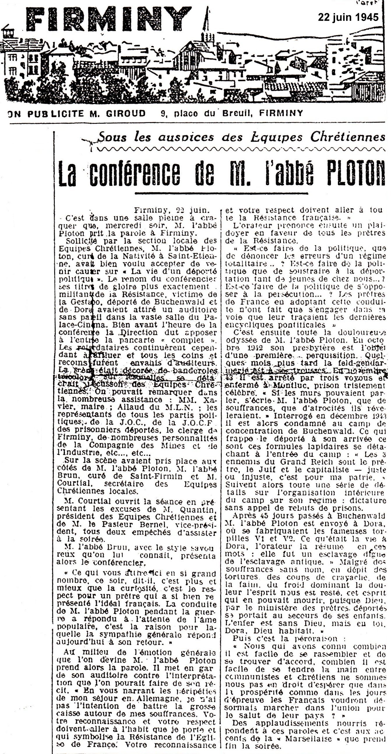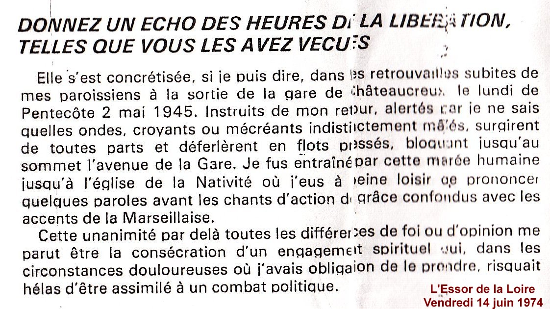 Dans le quotidien L'Essor de la Loire du 14 juin 1974, Robert PLOTON évoquera cette journée à l'occasion du 30ème anniversaire de la Libération, un an avant sa mort :