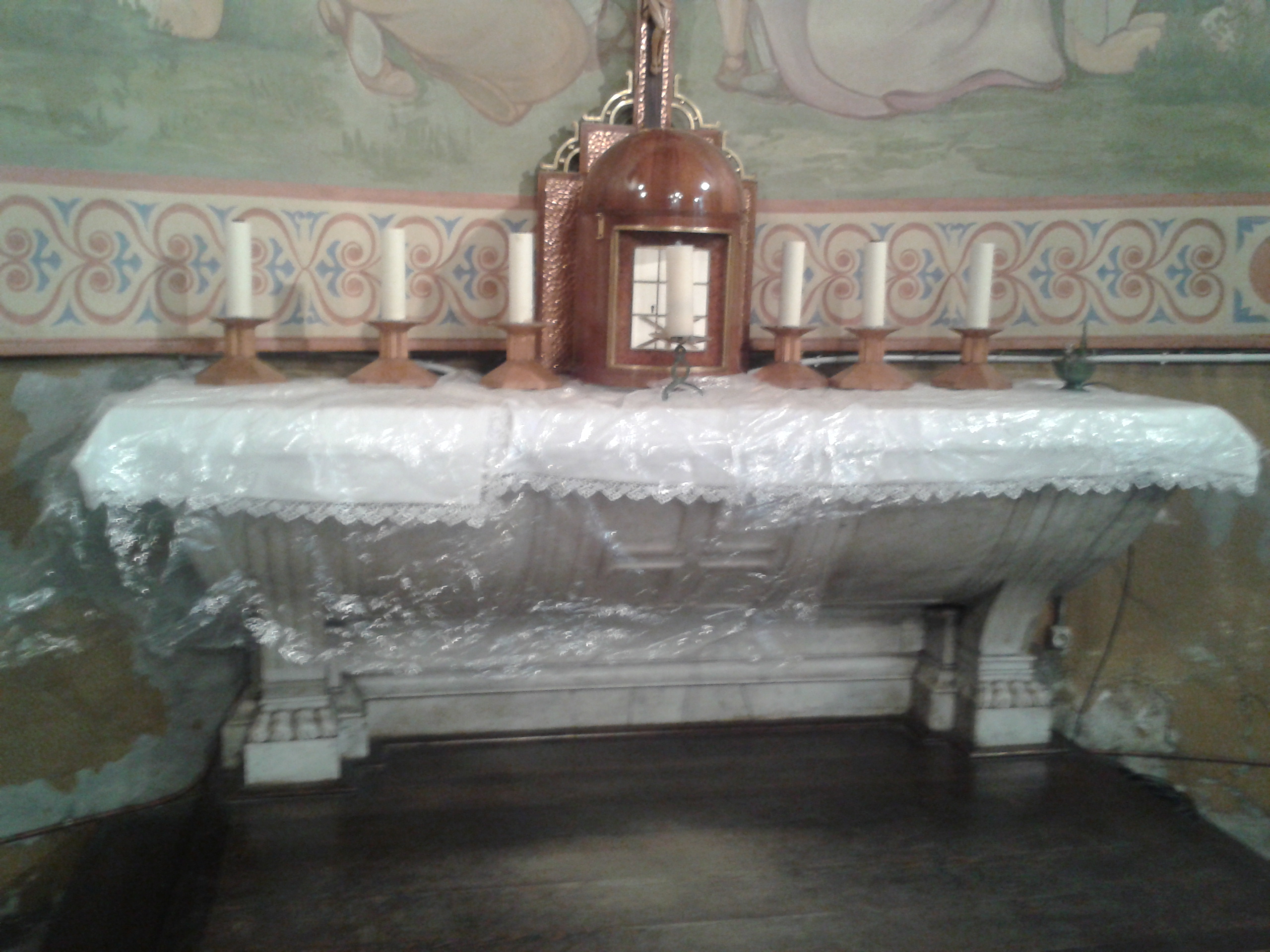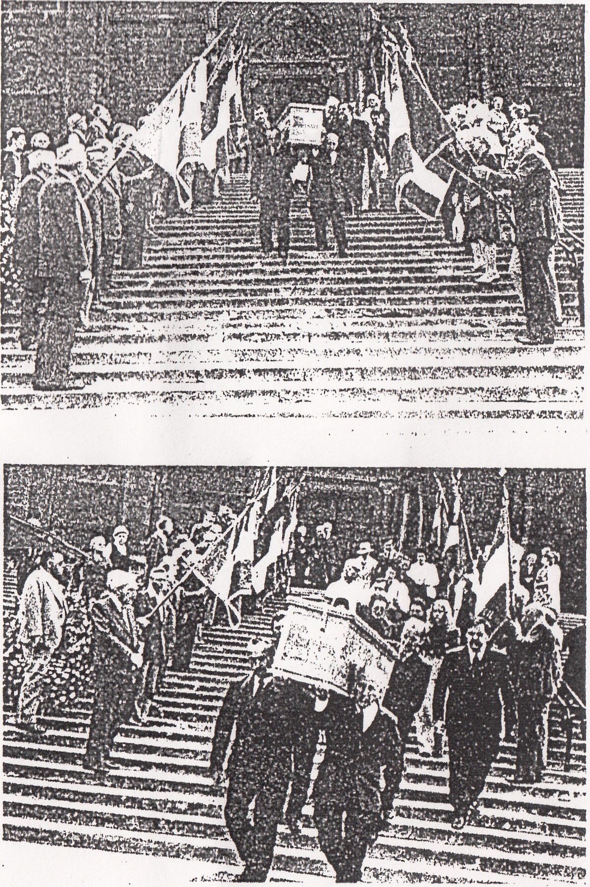Une fois rassurés sur ce point, Pierre POUGHON et Fernand LÉVY se rendent au marché de gros des légumes et des fruits place Chavanelle. Ils s'y font prêter par une connaissance un char à bras monté sur deux roues que les marchands des quatre saisons et les épiciers utilisant pour emporter leurs primeurs. Il pleut souvent en octobre et il faut souvent pouvoir protéger la marchandise, on leur remet donc aussi une bâche. Au dessus de l'église existe un passage entre deux immeubles accessible depuis la rue de l'Éternité, bien moins visible au trafic. C'est ainsi qu'ils y accèdent par la sacristie, ôtent la lourde table de marbre qui recouvre le retable de l'autel et en retirent des paquets de "Combat", de "Franc-Tireur", de "Libération", de "Cahiers du Témoignage Chrétien", ainsi que d'autres journaux, tracts et documents divers.
