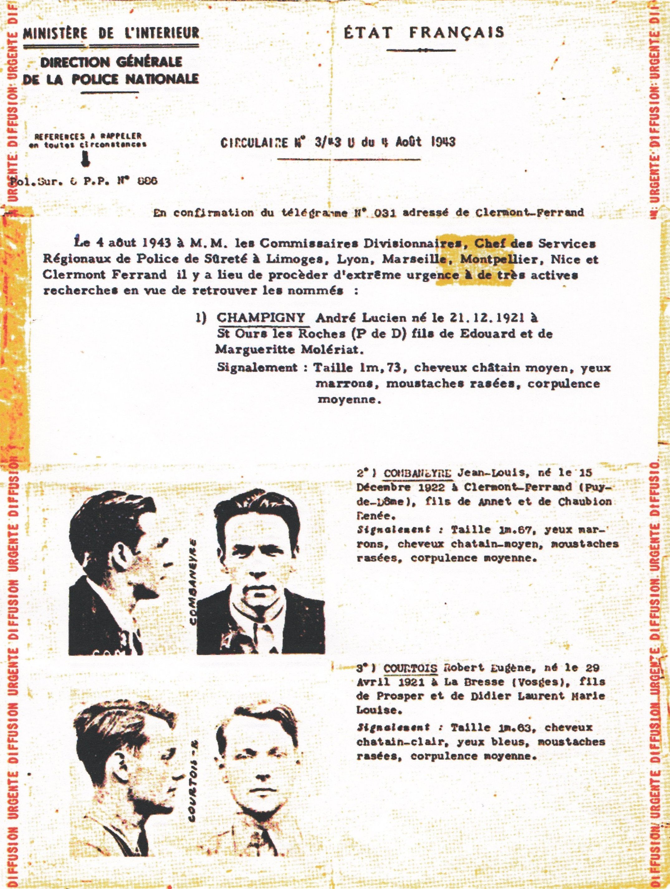 Cela ne sera pas toujours répété, mais cela n'aurait pas été accessible sous la forme ci-dessous proposée sans une tâche qui a duré des années, et sans l'aide et l'apport de nombreux documents essentiels précieusement conservés par Daniel ROURE.