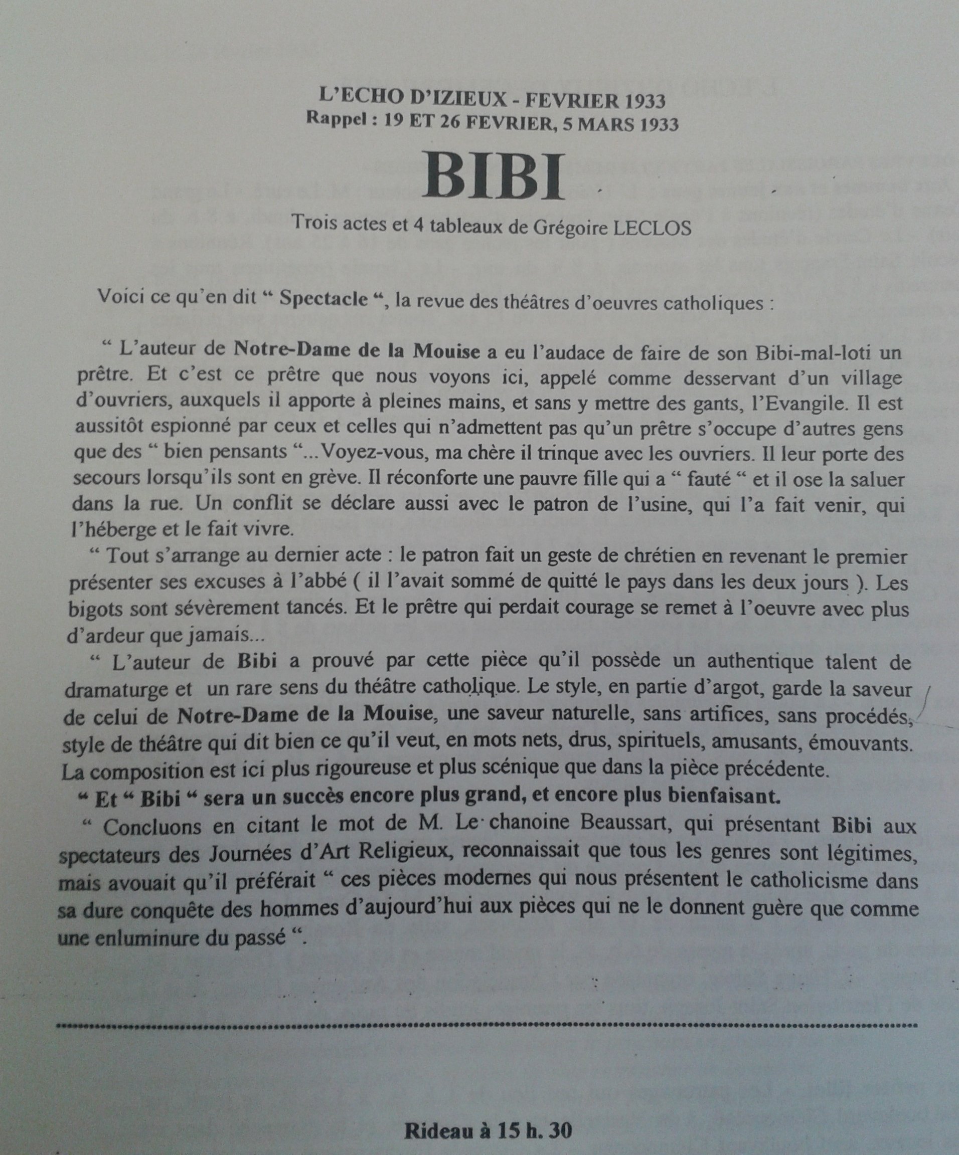 Le 31 janvier 1932, la troupe d'Izieux présente à Saint-Chamond "Notre Dame de la Mouise", spectacle auparavant joué avec succès à La Ricamarie toute proche.