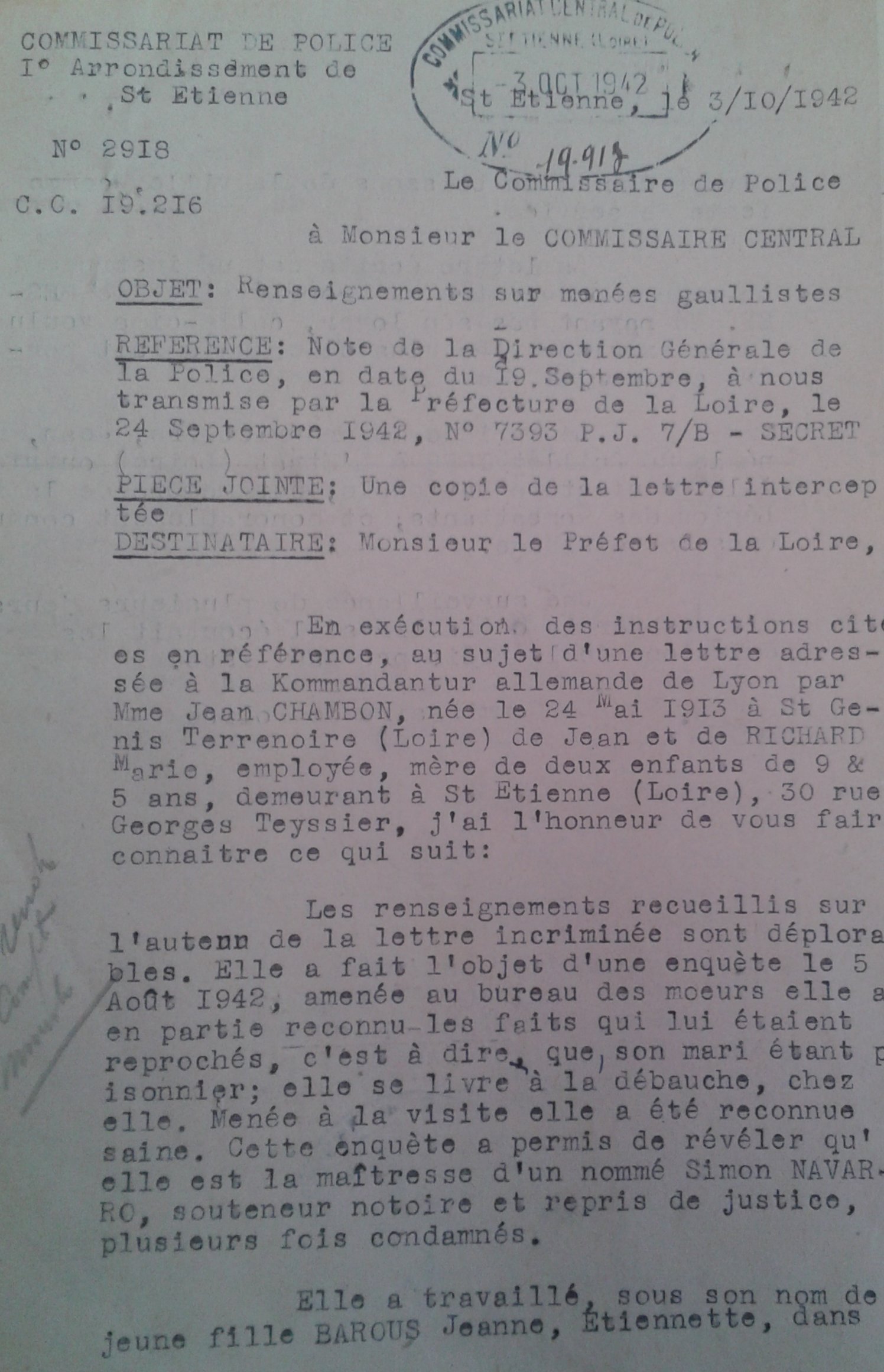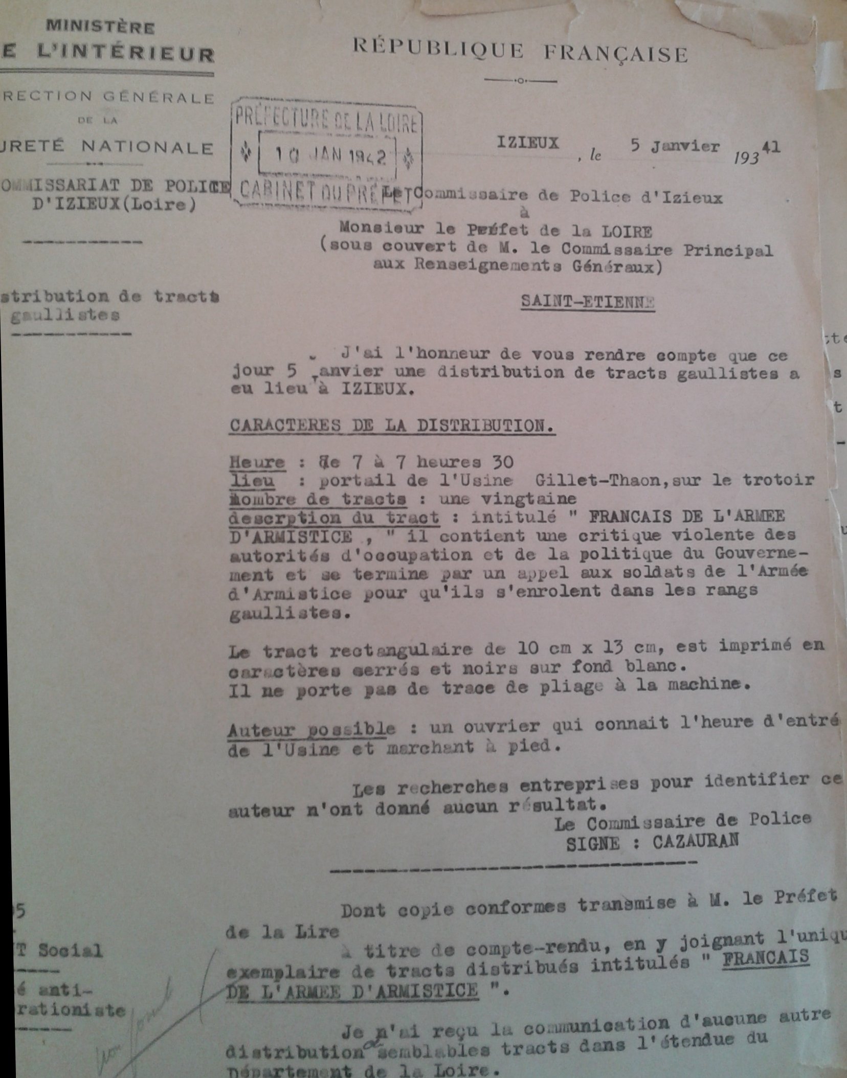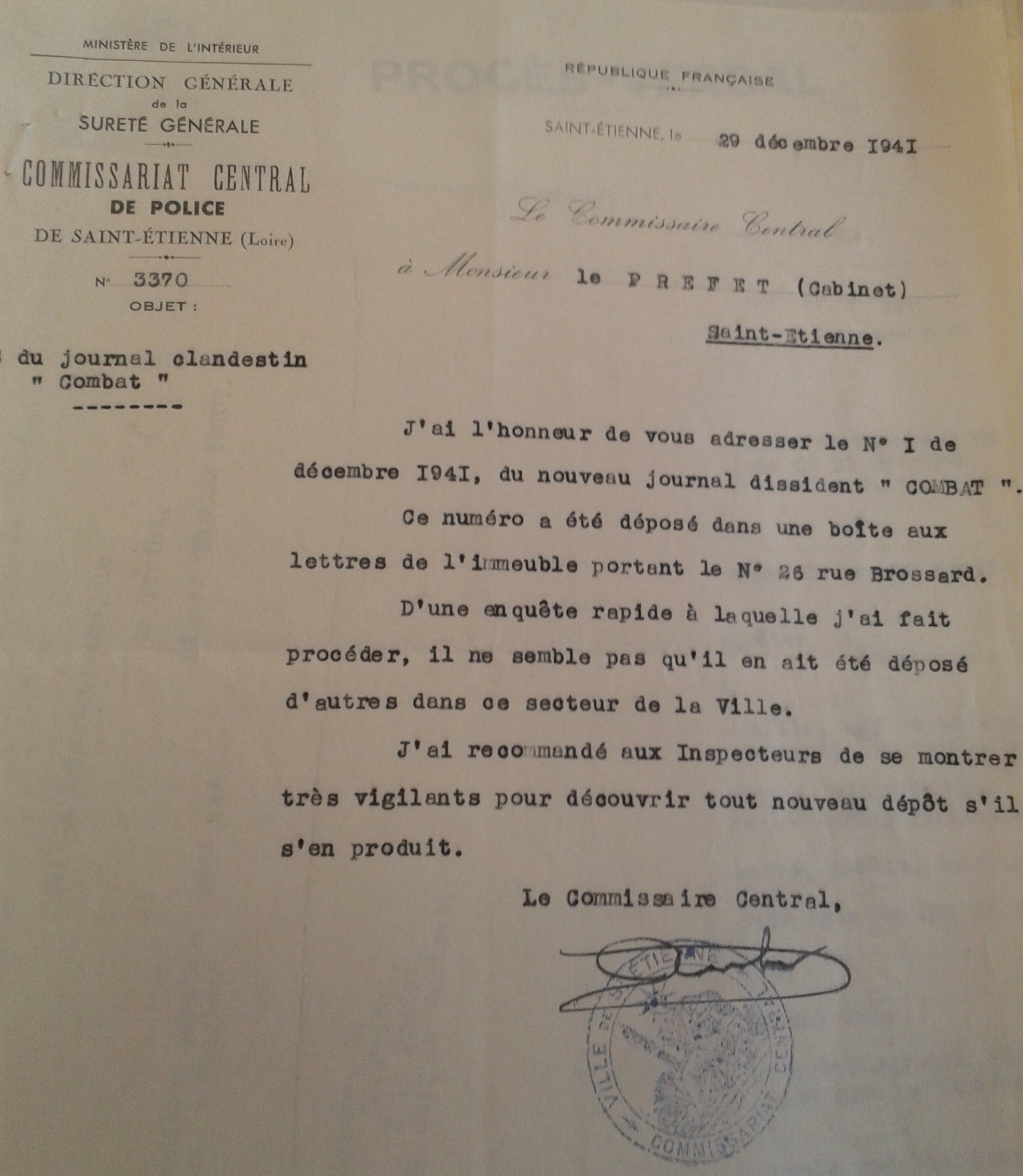 Combat ![]() Note au Préfet du 29/12/1941 |