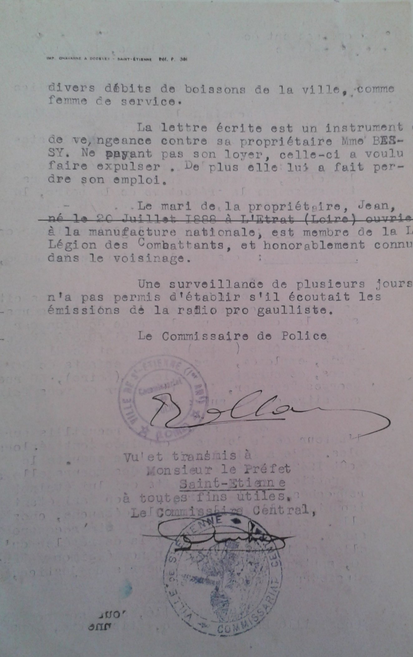 À Saint-Chamond, c'est l'épicerie-fromages REY, 4 place de la Liberté, qui sera détruite en pleine nuit par des pains de plastic. Le père et le fils servaient les nazis. Le fils était 'chef de centaine à la Milice. Louis PAUZE se souvient que la veille, Maurice était venu voir ses parents au 1er étage du 34 rue de la Liberté." (...)