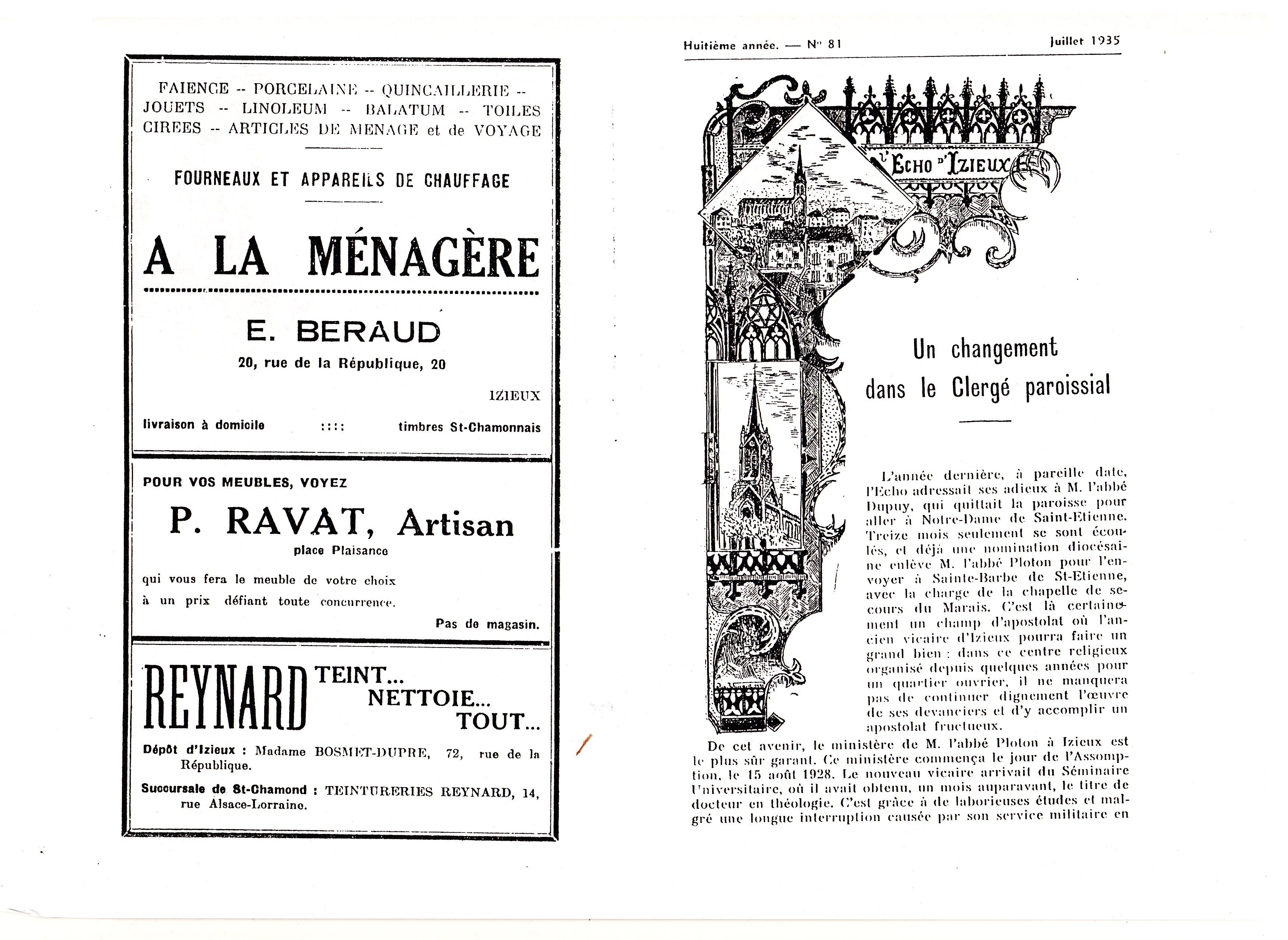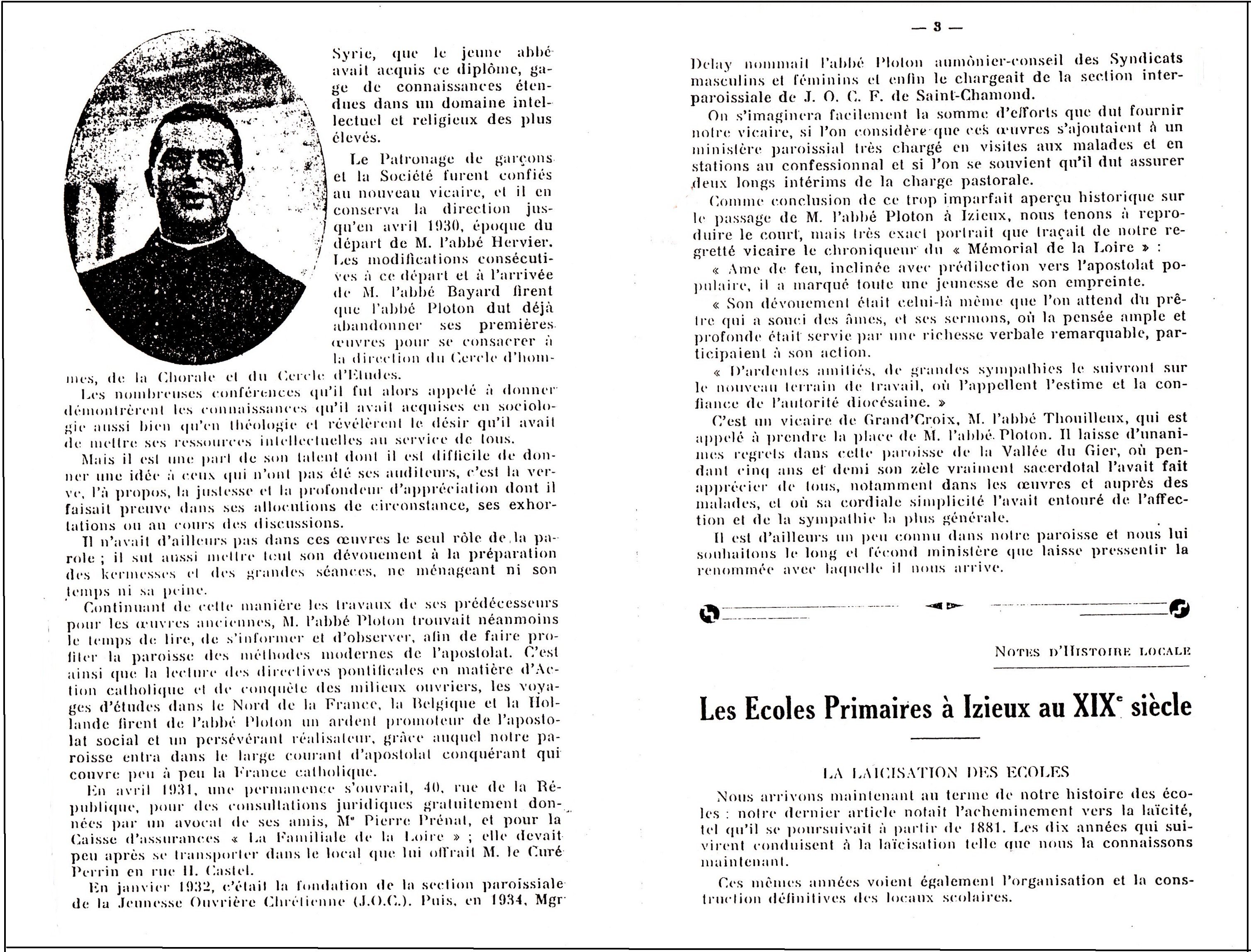 Robert PLOTON qui n'est alors que curé par intérim d'Izieux est peu de temps après appelé à quitter cette paroisse.