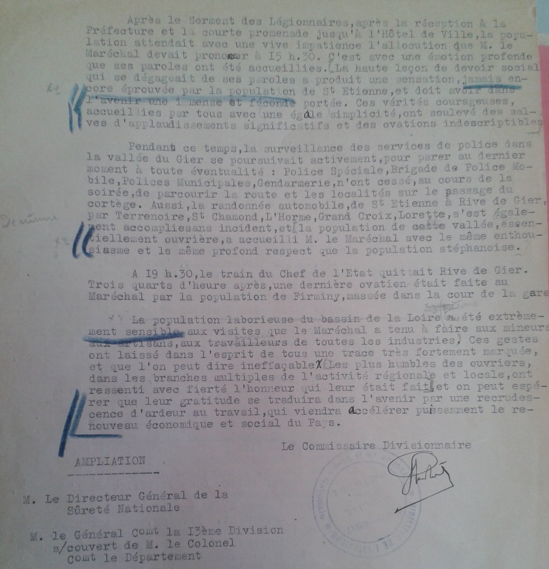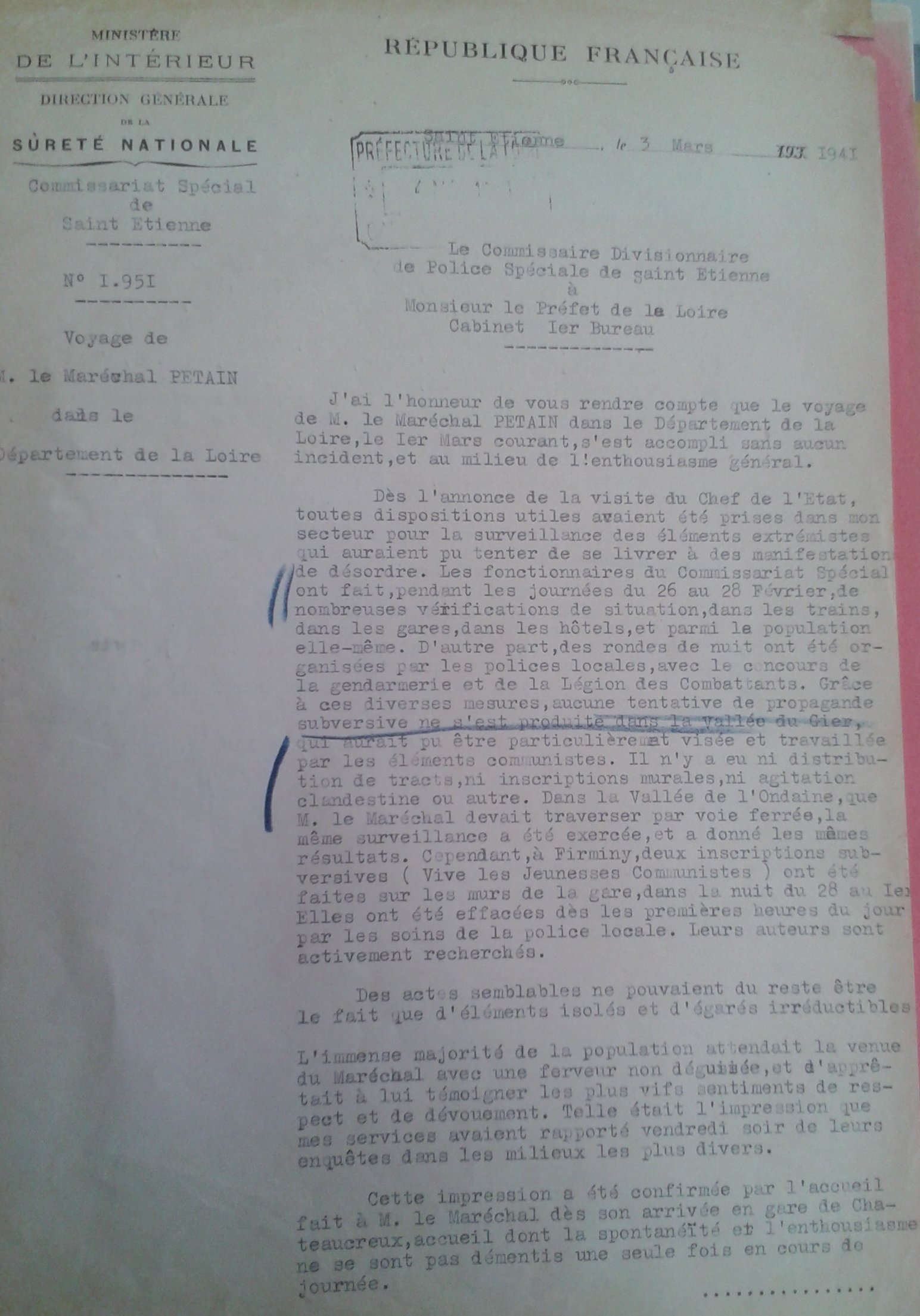 1er mars 1941 : promulgation de la "Charte du Travail" définie à Saint-Étienne par Philippe PÉTAIN le 1er mars 1941 [cf. vidéo disponible de sa venue] et promulguée le 4 octobre suivant.