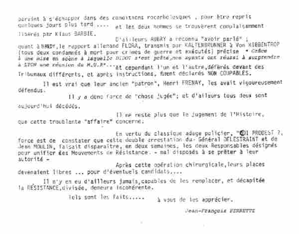 Mais dans l'euphorie de leur libération, pour laquelle il avait donné sa vie, les Français ne l'ont pas su; et depuis bientôt un demi-siècle, se faisant l'inconscient complice de ses bourreaux, la nation continue d'ignorer ce héros qu'on est parvenu à faire disparaître sans linceul, ni trace... NACHT UND NEBEL..., dans la Nuit et le Brouillard de l'oubli.