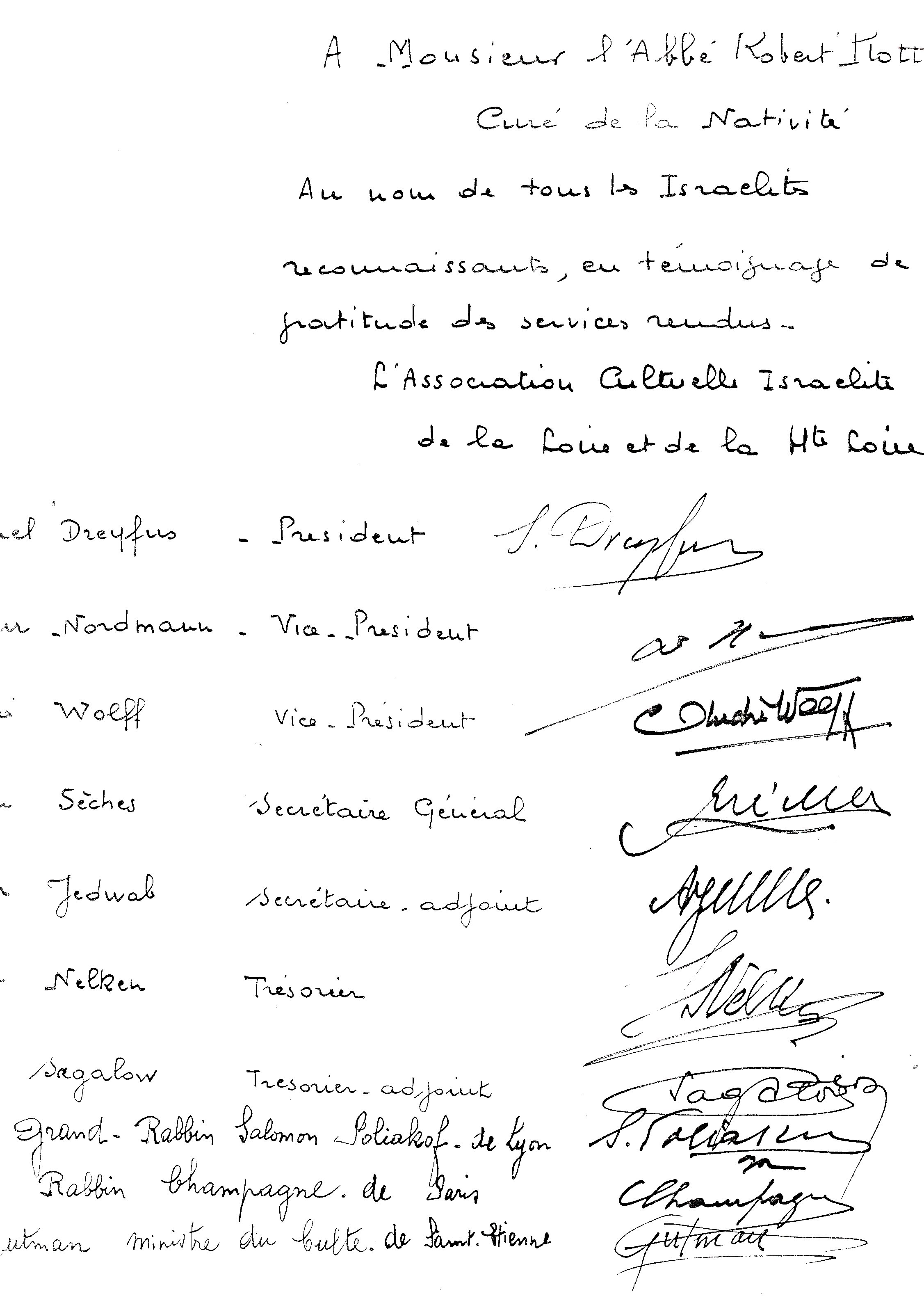Le 2 avril 1997, Pierre LEBRET, "Chancelier-archiviste du diocèse de Saint-Étienne", a transmi ces renseignements concernant Robert PLOTON "tirés des archives léguées par Lyon lors de la séparation des diocèses et de 'Églises à Lyon & Saint-Étienne' de septembre 1975". Ces renseignements étaient présenté sous forme de biographie chronologique, et certains d'entre eux ont été utilisés pour ce travail. à l'époque) le 2 avril 1927, doctorat de théologie, chargé spécialement de la chapelle du Marais (Saint-Étienne) en 1935, Saint-Étienne] en 1939 ; il a pour vicaire son propre frère Romain, lui aussi prêtre, écrira ses "souvenirs" dans un livre-brochure De Montluc à Dora, est nommé chanoine honoraire de sa primatiale St Jean en octobre 1954 par le cardinal GERLIER, archevêque de Lyon, chrétiennes de Firminy" et abandonne sa charge de curé en 1961, |