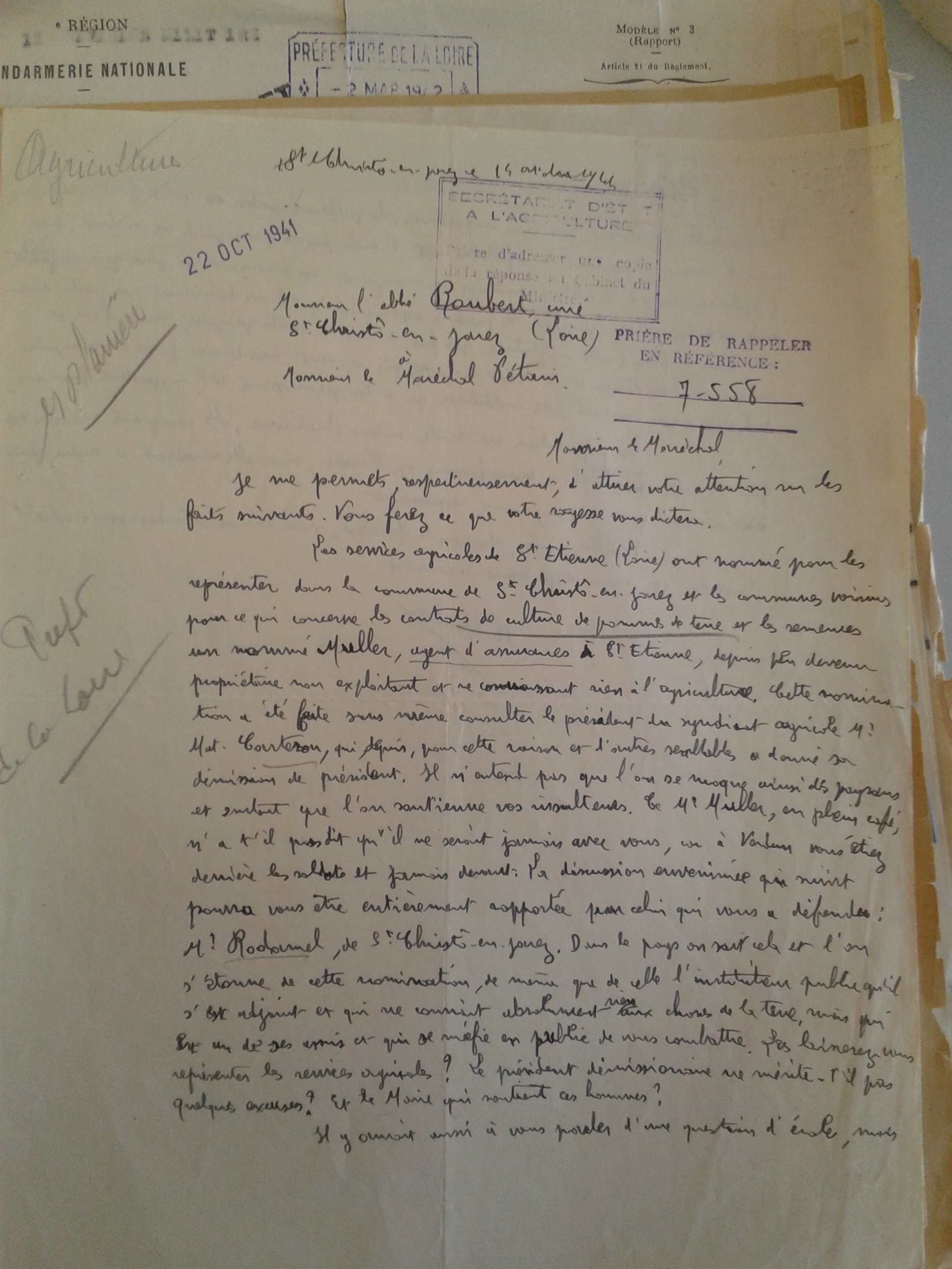Combat ![]() Note au Préfet du 29/12/1941 |